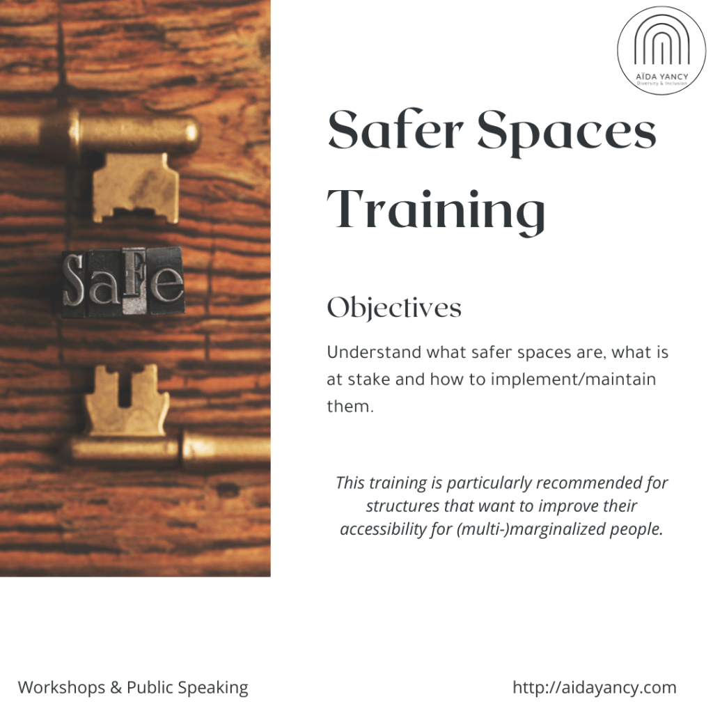 My interventions can take place live or online, in public or private settings. They usually target adults but can be adapted to teenagers.